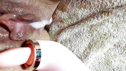 My glorious ginger-haired wifey faps in front of me with a water jet and fucks with a dildo. AnnaHomeMix