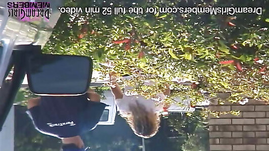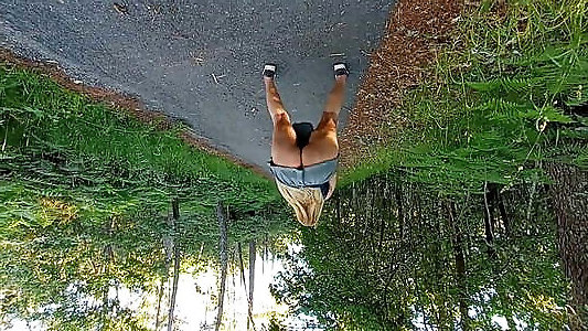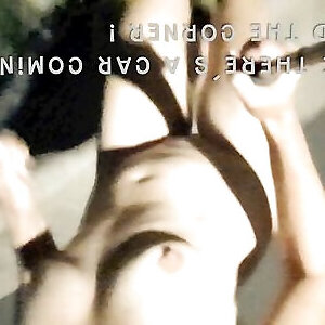 Jaw-dropping teenager displays naked caboose under brief micro-skirt right next to a active road