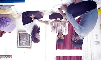 Oh no! Teenager girl Schoolgirl discovers her stepsister fucking with her stepfather when she gets home