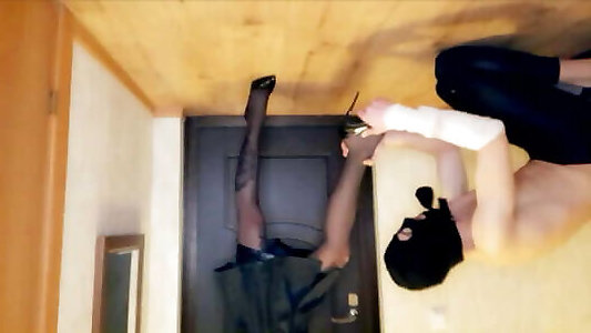 Dominatrix Nika gives her slave&039;s big dick a footjob in nylon stockings. Stocking fetish. Nylon fetish. Footjob. Femdom Seductio