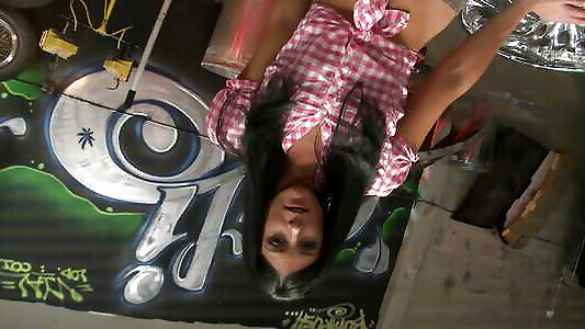 Pretty brunette, female pee hole sounding Summer, gets it on with a rough looking dude in a garage, Squirts As She Gets Fucked