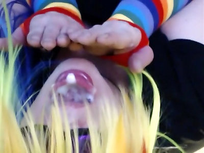 Horny sissy crossdresser Nikola with blonde pigtails make her clity hard and cum