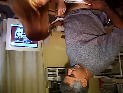 At lunchtime, the boss milks my dick. She wants me to cum in her panties. di perkosa sama majikan sex games. Amateur video.