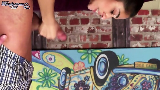 Pigtailed black-haired, firisht sex boy Knite is getting down on all fours on the floor and gargling her married neighbor&039;s fuck-stick